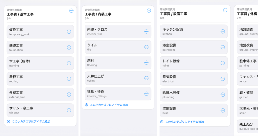 そういった経験から、予算管理をしながら少しでも楽しさの多い家づくりができるといいなと思い、このアプリを作ってみました。